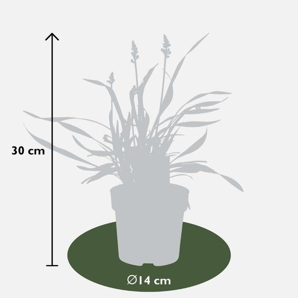 Breng een vleugje elegantie en kleur in uw tuin of interieur met deze prachtige set van 6 Liriope muscari 'Ingwersen'. Deze siergrasvariëteit, bekend om zijn lange, glanzende, donkergroene bladeren, produceert in de late zomer en herfst dichte, opgaande aren met lavendelkleurige bloemen. Geleverd in potten met een diameter van 14 cm en een gemiddelde hoogte van 30 cm, zijn deze planten ideaal voor zowel binnen- als buitengebruik.