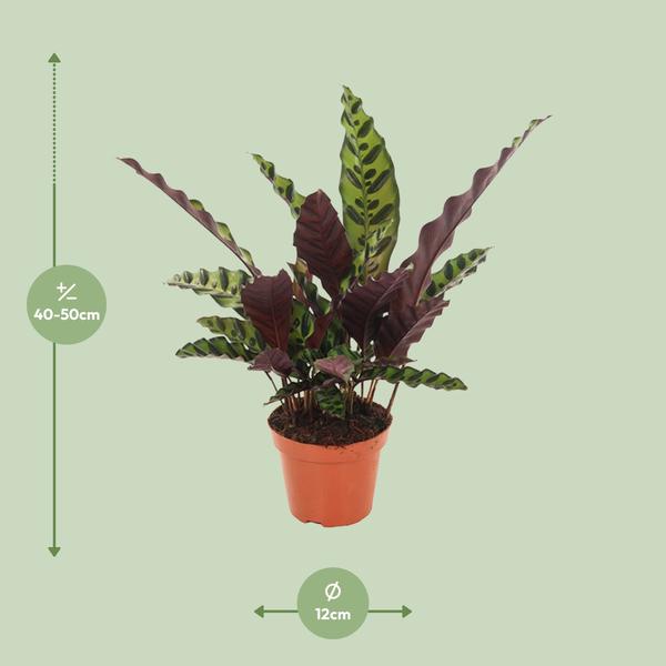 Calathea Insignis, ook wel bekend als de Calathea, is een prachtige kamerplant die een vleugje natuurlijke elegantie toevoegt aan elke ruimte. Afkomstig uit de tropische regenwouden van Brazilië, heeft deze schoonheid lancetvormige bladeren met levendige groene strepen en gedetailleerde patronen. Met zijn tolerantie voor weinig licht en luchtzuiverende eigenschappen is de Calathea perfect om een ontspannen sfeer te creëren in uw huis of kantoor. Ontdek vandaag nog de wonderen van Calathea Insignis en breng een stukje regenwoud in uw binnenruimte. Maak kennis met de prachtige Calathea Insignis, een botanische schoonheid die een prominente plek in je huis verdient! Deze opvallende plant gedijt goed in een halfbeschaduwde of schaduwrijke omgeving en is daardoor een uitstekende keuze voor elke hoek die snakt naar een vleugje elegantie. Om hem in optimale conditie te houden, is het belangrijk om regelmatig water te geven, aangezien hij dol is op vochtige grond. Met zijn levendige bladeren en gemakkelijk te onderhouden karakter is deze Calathea Insignis perfect voor zowel beginnende als ervaren plantenliefhebbers. Mis deze weelderige, schaduwliefhebbende parel niet - haal vandaag nog de Calathea Insignis in huis!Wist je dat de Calathea Insignis, ook wel bekend als de Ratelslangplant, zijn naam heeft gekregen vanwege zijn opvallend gelijkende uiterlijk op slangenhuid? Deze prachtige planten komen oorspronkelijk uit Brazilië en staan bekend om hun uniek gevormde bladeren die lijken op de huid van een slang. Met het levendige groen en de dieppaarse onderkant voegt de Calathea Insignis een vleugje exotische elegantie toe aan elke binnenruimte. Hoewel het verleidelijk kan lijken, is het belangrijk om te onthouden dat deze charmante plant uitsluitend bedoeld is voor decoratieve doeleinden en niet bestemd is voor consumptie. Dus ga achterover zitten, ontspan en geniet van de betoverende schoonheid van dit niet-eetbare juweel!- Calathea Insignis, ook bekend als Calathea, is een populaire kamerplant met een potmaat van 12 cm.- Deze prachtige plant kan uitgroeien tot ongeveer 50 cm in hoogte, waardoor het een ideale keuze is voor kleinere ruimtes.- Calathea geeft de voorkeur aan een plek in halfschaduw, waardoor het perfect is voor binnenruimtes met beperkt licht.- Een interessant feit over Calathea is dat de bladeren gedurende de dag omhoog en omlaag bewegen als reactie op licht. Dit fenomeen, bekend als nyctinastie, voegt een interactief element toe aan de schoonheid van de plant.- De unieke patronen en kleuren op de bladeren van Calathea maken het een visueel opvallende toevoeging aan elk huis of kantoor, terwijl het ook zorgt voor een natuurlijk luchtzuiverend effect.