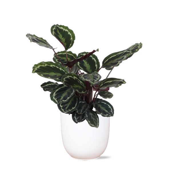 Laat je betoveren door de Calathea Medallion, een meesterwerk van moeder natuur dat jouw leefruimte transformeert tot een weelderige oase van kleur en elegantie! Met haar opvallende bladeren, sierlijk bedrukt met levendige tinten groen en paars, brengt deze kamerplant een vleugje tropische pracht in huis. De Calathea Medallion staat niet alleen bekend om haar visuele allure maar ook om haar unieke eigenschap om 's nachts haar bladeren te sluiten, waardoor ze een levendig schouwspel creëert. Deze plant gedijt in indirect licht en houdt van vochtige omstandigheden, waardoor ze perfect is voor liefhebbers van binnenplanten. Voeg een vleugje jungle-chic toe aan je interieur met de Calathea Medallion en ontdek de harmonie tussen prachtige esthetiek en eenvoudige verzorging. Haal deze betoverende plant vandaag nog in huis en geef je leefruimte een exotische uitstraling! Over het algemeen worden Calathea-planten, waaronder de Calathea Medallion, beschouwd als niet-giftig voor mensen en huisdieren zoals katten en honden. Dat betekent dat ze geen stoffen bevatten die ernstige schade kunnen veroorzaken als ze worden ingenomen.