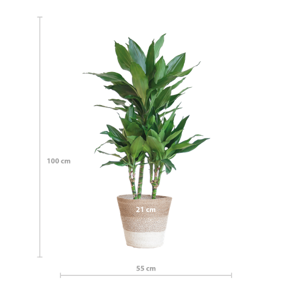 Dracaena Janet Lindt met mand Lissabon wit - 95cm - Ø21