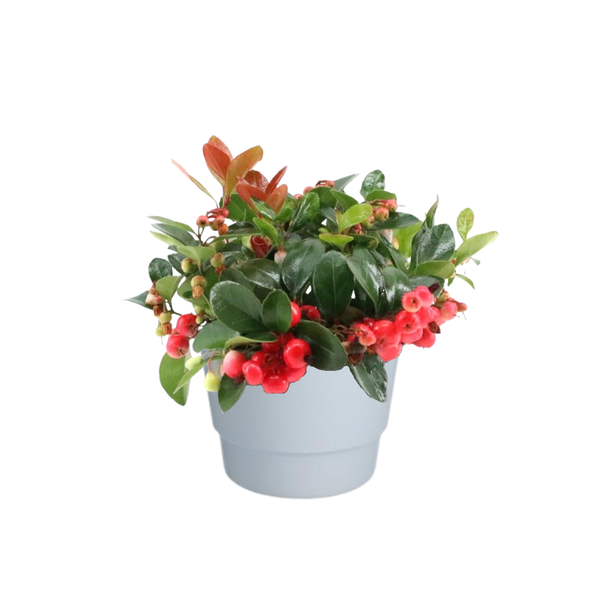 Gaultheria Pr. 'Big Berry' - Ø10cm - ↕15cm + Pot Basic D11,5x9cm - Wit