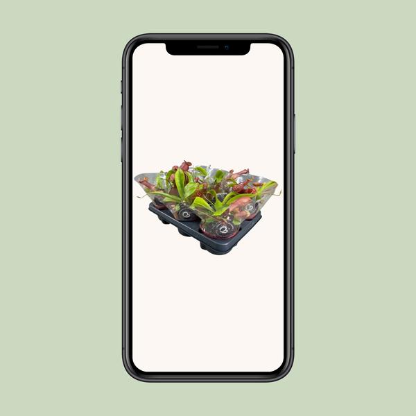 Uiterlijk van de plant: De Nepenthes Alata, ook wel bekend als de 'vliegtuigplant', heeft unieke, kleurrijke bladeren die omgevormd zijn tot vangkommen. Deze kommen zijn meestal groen met rode of paarse vlekken en hebben vaak een interessante, opwaartse kromming. De bladeren kunnen variëren in grootte, maar ze zijn altijd opvallend en opvallend van uiterlijk. De plant produceert geen bloemen, maar de vangkappen zijn de belangrijkste kenmerken.