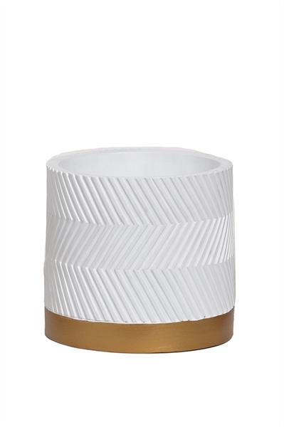 - Met een opvallende, ronde vorm en stijlvolle ribbelstructuur, voegt deze pot karakter toe aan uw planten.