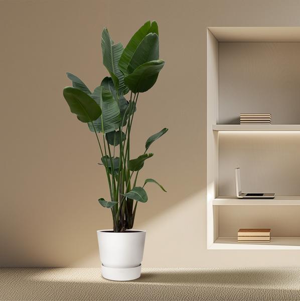- Uiterlijk van de plant: De Strelitzia Nicolai, ook bekend als de Witte Paradijsvogelplant, heeft grote, lanceervormige bladeren met een prachtige groene kleur. De plant kan indrukwekkende, witte bloemen met blauwe tinten produceren die op een vogel in vlucht lijken.
