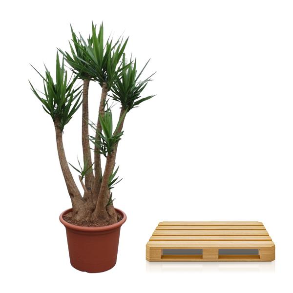 - De bladeren groeien in een rozetvorm aan de bovenkant van de stam, waardoor een tropisch uiterlijk ontstaat.