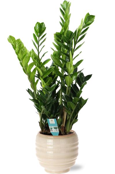 Zamioculcas - Ø21cm - ↕100cm + Dalmine Pot D22x20cm - Wit