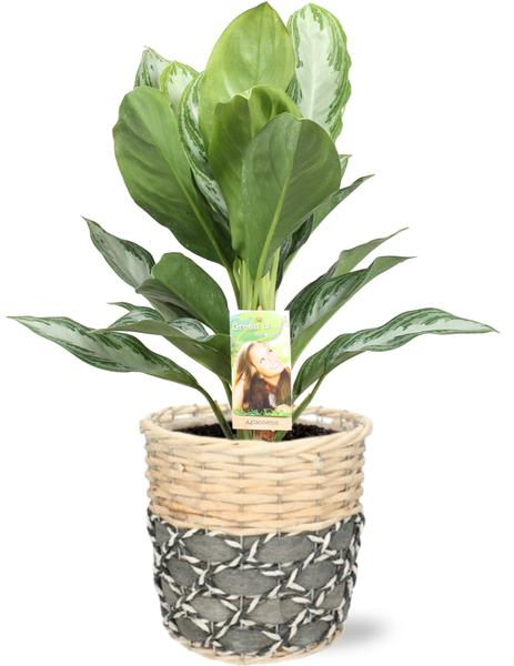 Aglaonema Silver Bay - Ø17cm - ↕55cm + Lexi Pot D19x19cm - Grijs