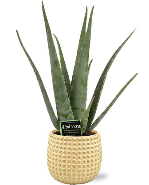 Aloe Vera - Ø19cm - ↕70cm + Bubble Pot D19,5x17,5cm - Goud