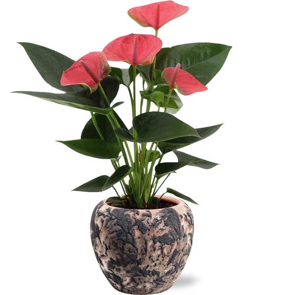 Anthurium Sweet Dream - Ø12cm - ↕36cm + Doug Pot D14x13cm - Zwart Beige