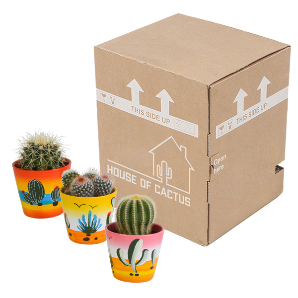 Bolcactus mix 8,5 cm | 3 stuks - in Mexicaanse pot
