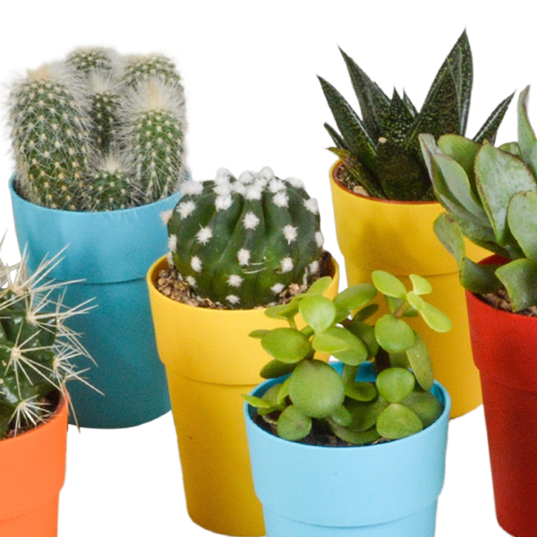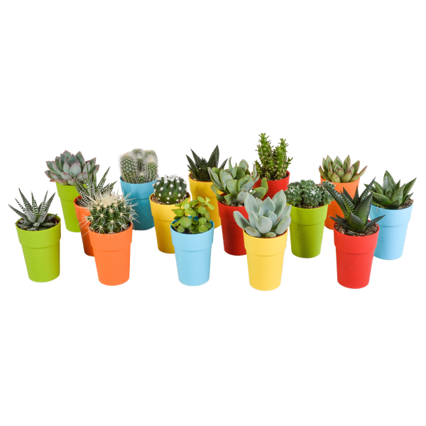 Cactus en vetplanten mix 5.5 cm | 15 stuks - in gekleurde plasticpot