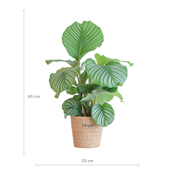 Calathea Orbifolia met Sofia mand naturel - 65cm - Ø21