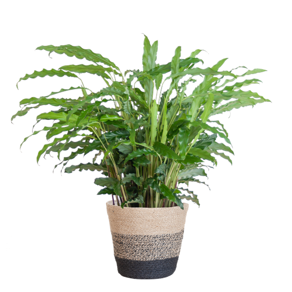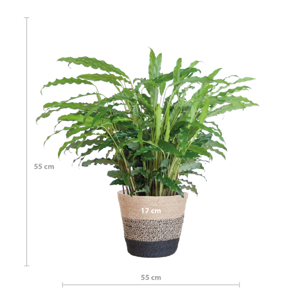 Calathea Rufibarba met Mand Lissabon zwart - 55cm - Ø17