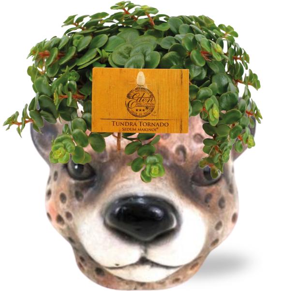 Sedum Tornado - Ø11cm - ↕15cm + Planter Luipaard D12x9,5cm - Bruin