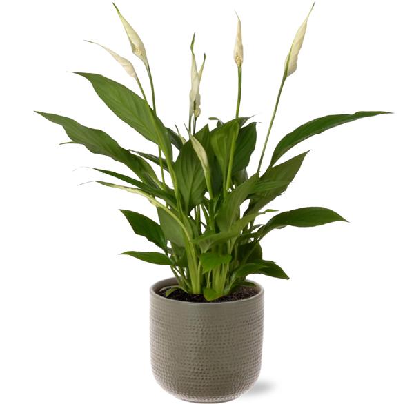 • De Spathiphyllum, ook wel lepelplant genoemd, heeft glanzende, donkergroene bladeren die langwerpig en spits toelopen. De bloemen zijn wit en bestaan uit een ovaalvormig schutblad dat een bloeikolf omringt. Deze elegante plant brengt een frisse en rustige sfeer in huis.