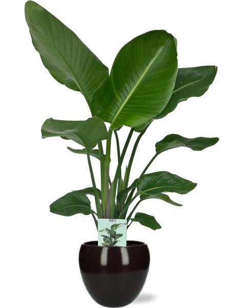 Strelitzia Nicolai - Ø19cm - ↕90cm + Bowl Pot D19/21x18,5cm - Zwart