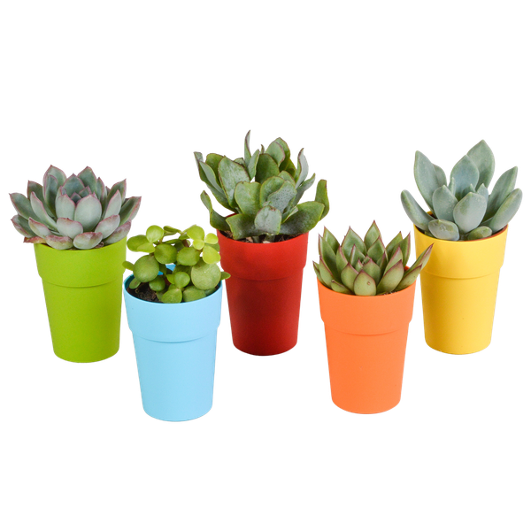 Vetplanten mix 5.5 cm - 5x - in gekleurde plasticpot
