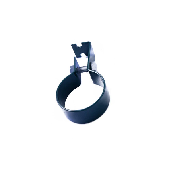 Support d'extrémité pour relier la haie prête à l'emploi à un poteau métallique.