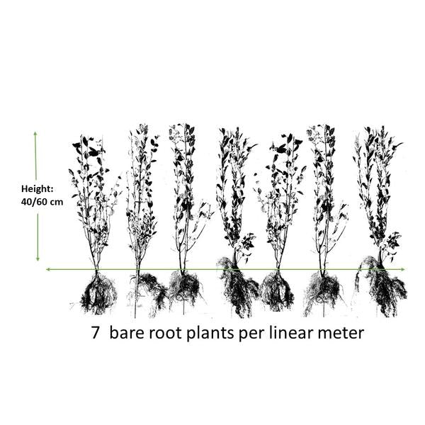 **Ligustrum ovalifolium (Privet Hedge)** : Cette plante de haie semi-persistante à croissance rapide est idéale pour n'importe quel jardin. La Haie à Privets reste compacte en la taillant deux fois par an (en avril et septembre). Profitez des fleurs blanches parfumées qui attirent les papillons en été, suivies des baies noires en automne. Convient à tous les types de sols, même les sols pauvres. Créez de l'intimité et de la beauté avec cette haie solide et facile à entretenir !