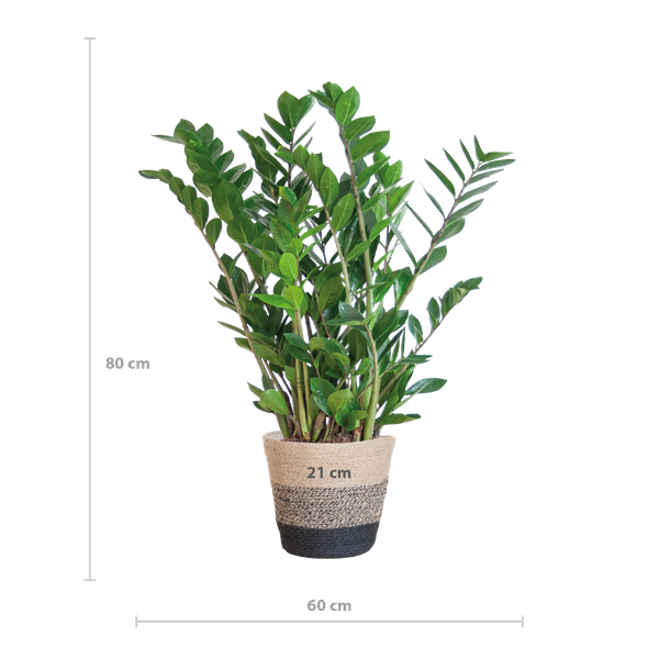Zamioculcas Zamiifolia avec Panier Lisbonne noir - 80cm - Ø21